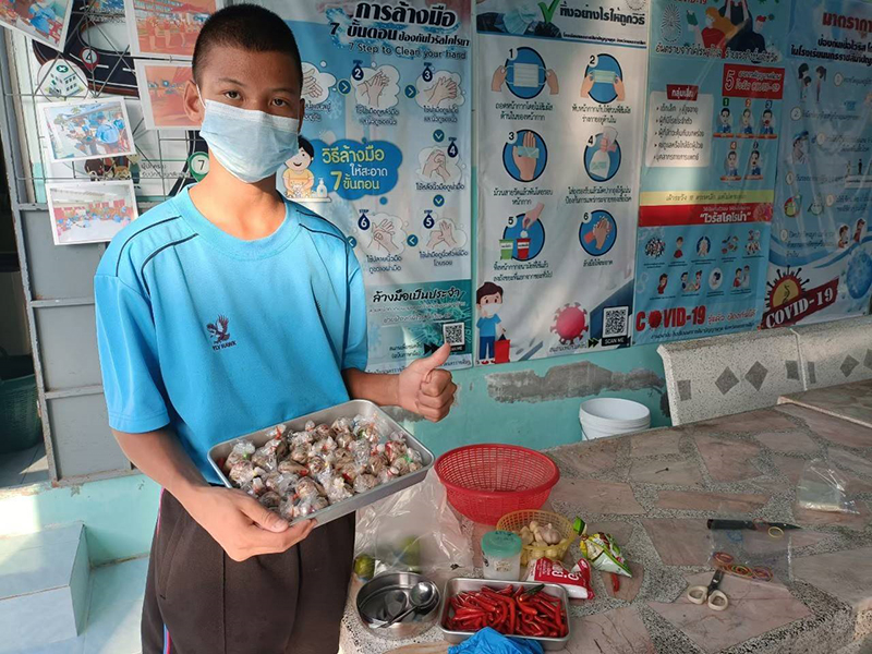 ในขณะที่ “น้องบีม” เล่าว่า โครงการเพาะเห็ด สานฝัน สร้างอาชีพ ทำให้ได้เรียนรู้ขั้นตอนการเพาะเห็ด ซึ่งเค้าทำได้เองทุกขั้นตอน ตั้งแต่รดน้ำเห็ด เก็บผลผลิตเห็ด ทำความสะอาดปากขวดที่ใช้เพาะ นำผลผลิตใส่ถุงไว้ให้แม่ทำกับข้าวขาย รวมทั้งนำเห็ดมาทำเป็นเห็ดทอด ผลผลิตเห็ดที่ได้ขายให้แม่ไปทำกับข้าว ต่อไปจะให้พ่อทำโรงเห็ด เพาะเห็ดขาย ส่วนเมนูที่ชอบ คือผัดเห็ด ต้มยำเห็ด ปลานึ่งจิ้มแจ่ว เห็ดทอด บีมบอกด้วยว่า ในอนาคตการเพาะเห็ด สามารถทำเป็นอาชีพเพื่อเลี้ยงครอบครัวได้