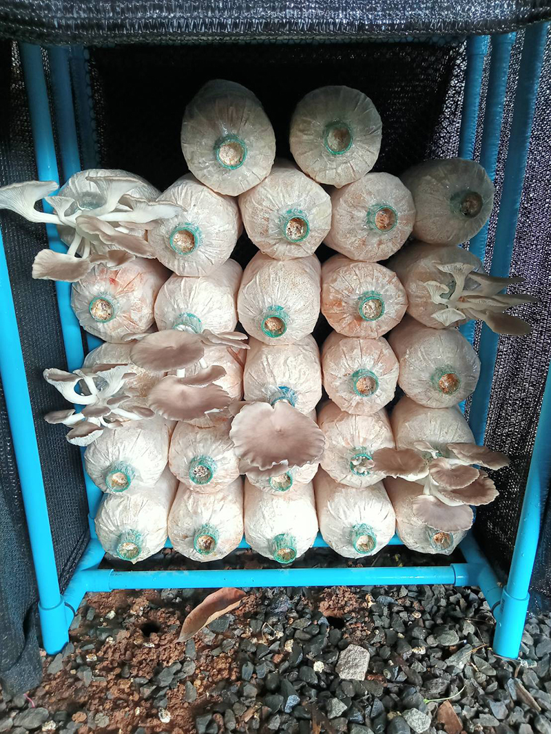ปัจจุบัน แม้เด็กๆ จะปิดเทอมกันแล้ว แต่โรงเรียนได้ทำคอนโดเห็ดมอบให้เด็กๆ ๕๒ ครอบครัว กลับไปดูแลที่บ้านต่อ ครอบครัวละ ๑ ชุด ประกอบด้วย ๑. คอนโดเห็ด ใช้ท่อพีวีซีทำเป็นโครงทรงสี่เหลี่ยมเหมือนบ้าน ทำเป็นชั้นๆ คลุมด้วยแสลนสีดำล้อมรอบ กั้นหลังด้วยตาข่ายพลาสติก ๒. ก้อนเชื้อเห็ด ๒๗ ก้อน โดยใช้งบประมาณที่ซีพีเอฟสนับสนุนโครงการฯ มาซื้อก้อนเชื้อเห็ดจากฟาร์มเห็ดใกล้ๆ โรงเรียน เพื่อทำคอนโดเห็ดมอบให้นักเรียน และยังมีครอบครัวนำร่อง ๕ ครอบครัว ที่โรงเรียนใช้งบประมาณในส่วนนี้ สนับสนุนก้อนเชื้อเห็ดให้เพิ่มเติมอีก ๕๐๐ ก้อน เพื่อต่อยอดสู่อาชีพ