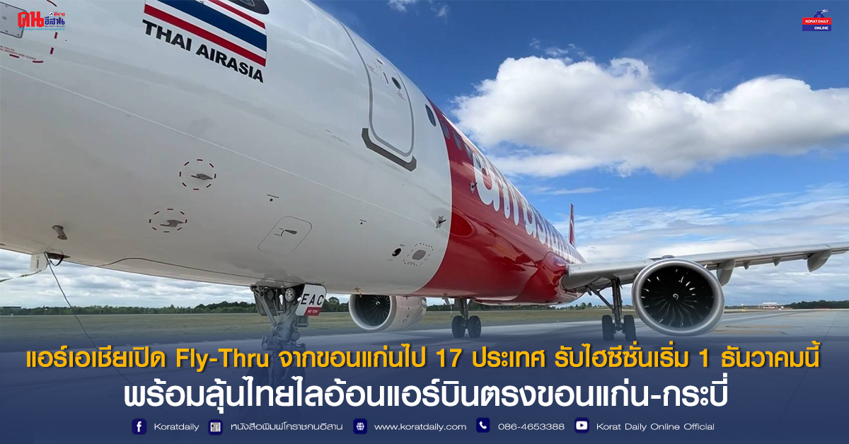 แอร์เอเชียเปิด Fly-Thru จากขอนแก่นไป 17 ประเทศ รับไฮซีซั่นเริ่ม 1 ธันวาคมนี้ พร้อมลุ้นไทยไลอ้อนแอร์บินตรงขอนแก่น-กระบี่