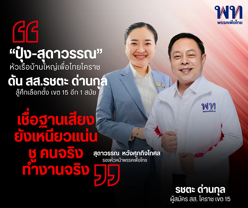 “น.ส.สุดาวรรณ หวังศุภกิจโกศล” รองหัวหน้าพรรคเพื่อไทย หัวเรือบ้านใหญ่โคราช ส่ง “รชตะ ด่านกุล” ปักธงฐานเดิม โคราช เขต 15 คนนี้มีดี “ตัวเล็ก ใจใหญ่ ใกล้ชิดประชาชน”