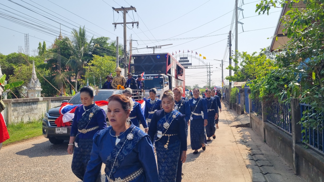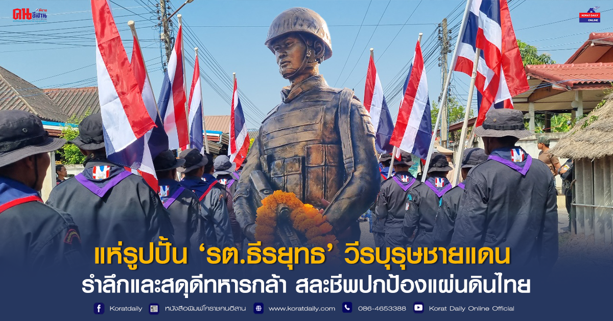 ผู้นำชุมชน ครอบครัว และชาวบ้าน ร่วมจัดขบวนแห่ รูปปั้น “ร้อยตรีธีรยุทธ กระจ่างทอง” ทหารกล้าผู้สละชีพปกป้องอธิปไตยชายแดนไทย-กัมพูชา นำไปประดิษฐานที่บ้านเกิด ต.ตาจง อ. ละหานทราย จ. บุรีรัมย์ เพื่อยกย่อง รำลึก สดุดีความกล้าหาญ และเป็นสัญลักษณ์ความภาคภูมิใจของครอบครัว