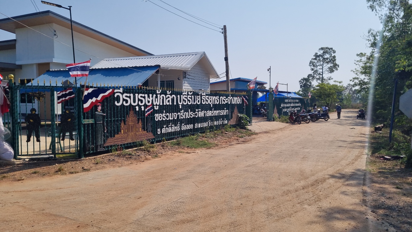 (9 มี.ค.69) ผู้นำชุมชน ชุดรักษาความปลอดภัยหมู่บ้าน (ชรบ.) พร้อมด้วยครอบครัว และชาวบ้านร่วมกันจัดขบวนแห่ ร้อยตรีธีรยุทธ กระจ่างทอง ทหารกล้าที่เสียชีวิตในการปฏิบัติหน้าที่ตามแนวชายแดนไทย-กัมพูชา บริเวณฐานช่องตาเฒ่า จ.ศรีสะเกษ เมื่อคืนวันที่ 29 กรกฎาคม 2568 โดยได้แห่จากอำเภอนางรอง เพื่อนำไปตั้งประดิษฐานที่บ้านเกิด ในพื้นที่บ้านยางโป่งสะเดา ต.ตาจง อ. ละหานทราย จ. บุรีรัมย์ ท่ามกลางบรรยากาศแห่งความภาคภูมิใจและการรำลึกถึงความกล้าหาญของผู้ล่วงลับ
