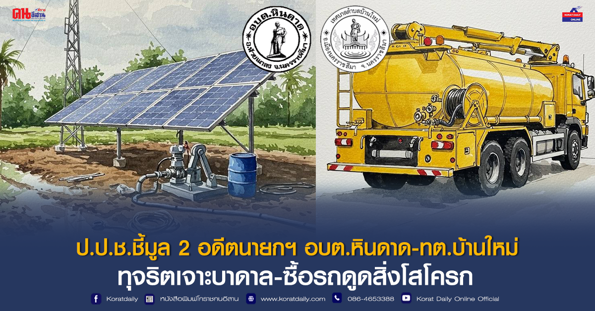 ป.ป.ช.ชี้มูล 2 อดีตนายกฯ อบต.หินดาด-ทต.บ้านใหม่ ทุจริตเจาะบาดาล-ซื้อรถดูดสิ่งโสโครก