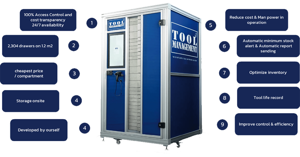บริษัท สโตร์ เมเนจเมนท์ จำกัด เป็นผู้ประกอบธุรกิจด้านการวิจัย พัฒนา และจัดจำหน่ายเครื่องจักรอุตสาหกรรม อุปกรณ์ และชิ้นส่วนอุตสาหกรรมทั้งในและต่างประเทศ โดยมีประสบการณ์ด้านการพัฒนาระบบ Tool Management System และโปรแกรมบริหารจัดการคลังสินค้ามากกว่า 10 ปี ปัจจุบันบริษัทได้พัฒนาและจำหน่ายระบบบริหารจัดการเครื่องมือตัดเฉือนโลหะแบบครบวงจรไปแล้วกว่า 82 ตู้ ครอบคลุม 52 โรงงาน ทั้งในประเทศไทยและประเทศมาเลเซีย ผ่านเครือข่ายพันธมิตรทางธุรกิจ