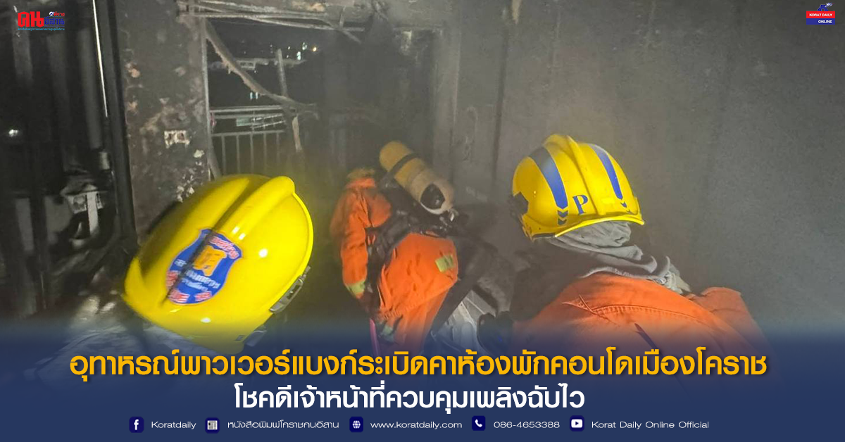 อุทาหรณ์พาวเวอร์แบงก์ระเบิดคาห้องพักคอนโดเมืองโคราช โชคดีเจ้าหน้าที่ควบคุมเพลิงฉับไว