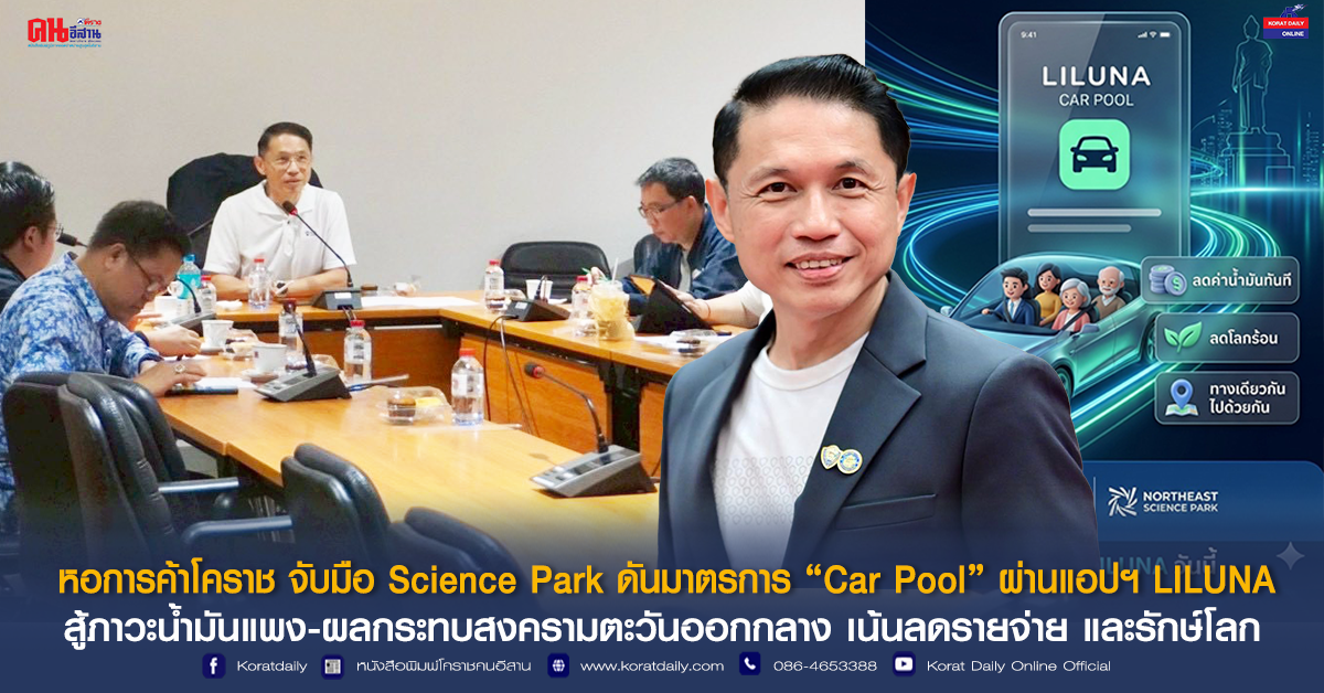 หอการค้าโคราช จับมือ Science Park ดันมาตรการ "Car Pool" ผ่านแอปฯ LILUNA สู้ภาวะน้ำมันแพง-ผลกระทบสงครามตะวันออกกลาง เน้นลดรายจ่าย และรักษ์โลก