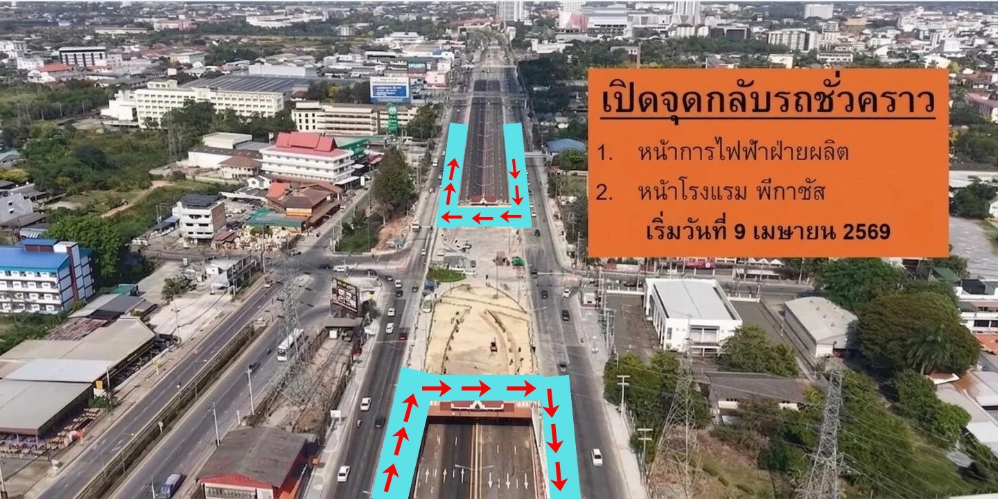 เปิด 2 จุดกลับรถ อุโมงค์ทางลอดแยกประโดก แก้รถติดสงกรานต์ ผรม.แบกต้นทุนยางมะตอย-ดีเซลพุ่ง เร่งหาวัตถุดิบย้ำเสร็จก่อนสัญญา