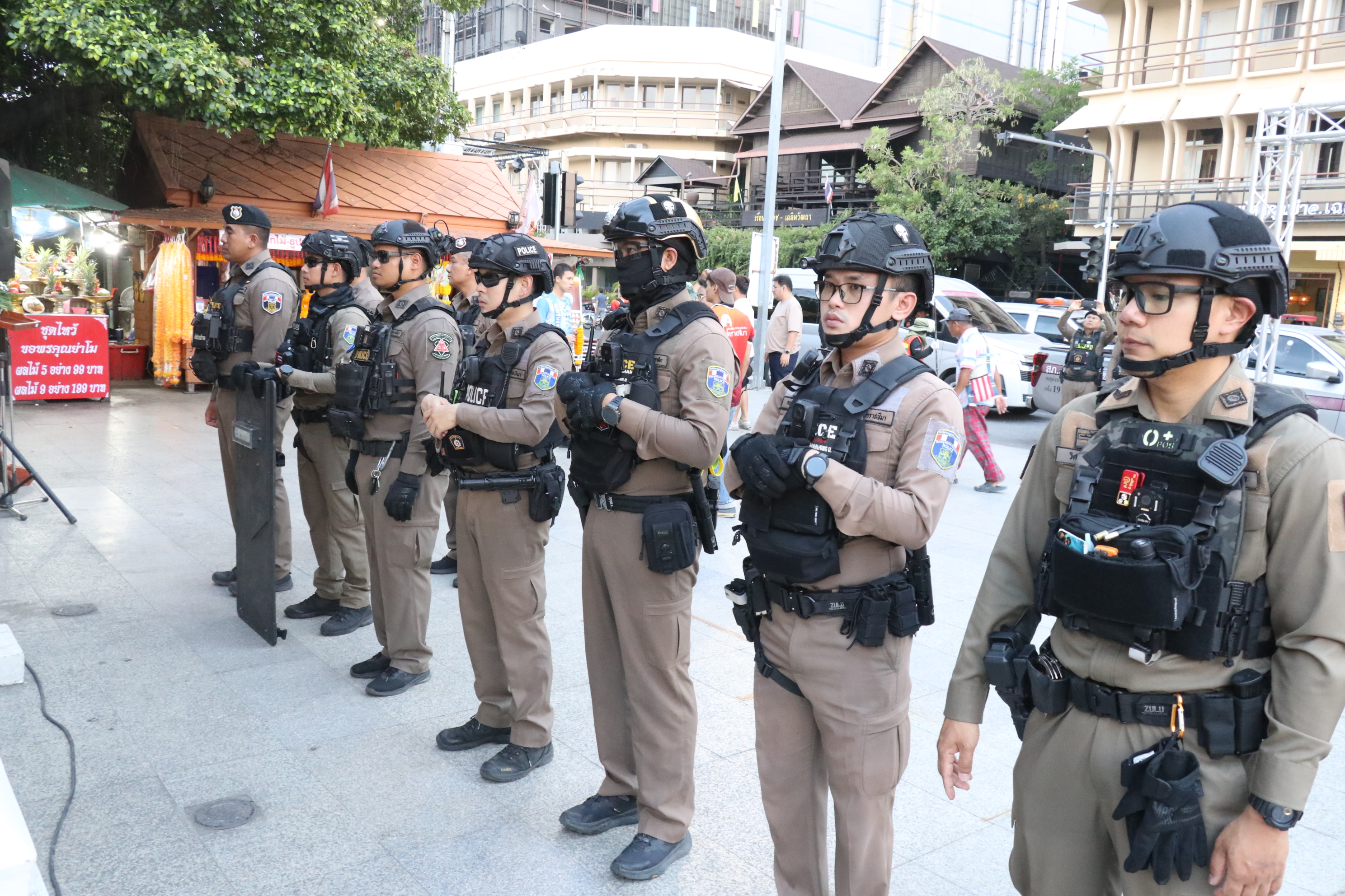 จากนั้นผู้ว่าราชการจังหวัดฯ และคณะได้เยี่ยมชมศูนย์ปฏิบัติการส่วนหน้า ที่บริเวณศาลาทรงไทยข้างลานอนุสาวรีย์ท้าวสุรนารีฯ สถานที่ใช้เป็นศูนย์ปฏิบัติการในการรักษาความปลอดภัยให้กับประชาชนที่มาเล่นน้ำสงกรานต์ในเขตเทศบาลนครนครราชสีมา ชมการสาธิตการใช้กล้องวงจรปิดเทคโนโลยี AI โดยตำรวจภูธรจังหวัดนครราชสีมาได้ว่าจ้างบริษัท ไทอคิเทคโปร จำกัด นำกล้องวงจรปิดเทคโนโลยี AI ไปติดไว้ในเขตเทศบาลนครฯ โดยเฉพาะบริเวณที่มีการจัดกิจกรรมการเล่นสงกรานต์ รอบบริเวณลานย่าโม, สี่แยกเต็กฮะ ถ.โพธิ์กลาง ตัดกับ ถ.โยธา ฯลฯ รวมทั้งจุดอื่นๆ ที่มีการรวมตัวกันหนาแน่น