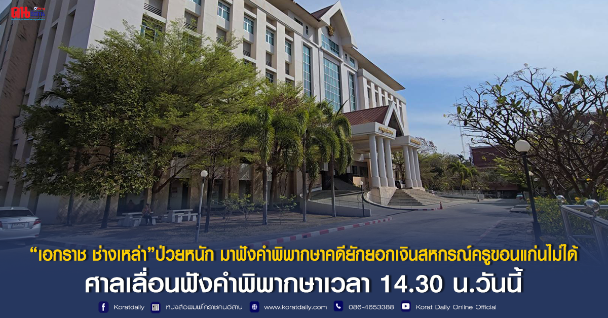 “เอกราช ช่างเหล่า”ป่วยหนัก มาฟังคำพิพากษาคดียักยอกเงินสหกรณ์ครูขอนแก่นไม่ได้ ศาลเลื่อนฟังคำพิพากษาเวลา 14.30 น.วันนี้