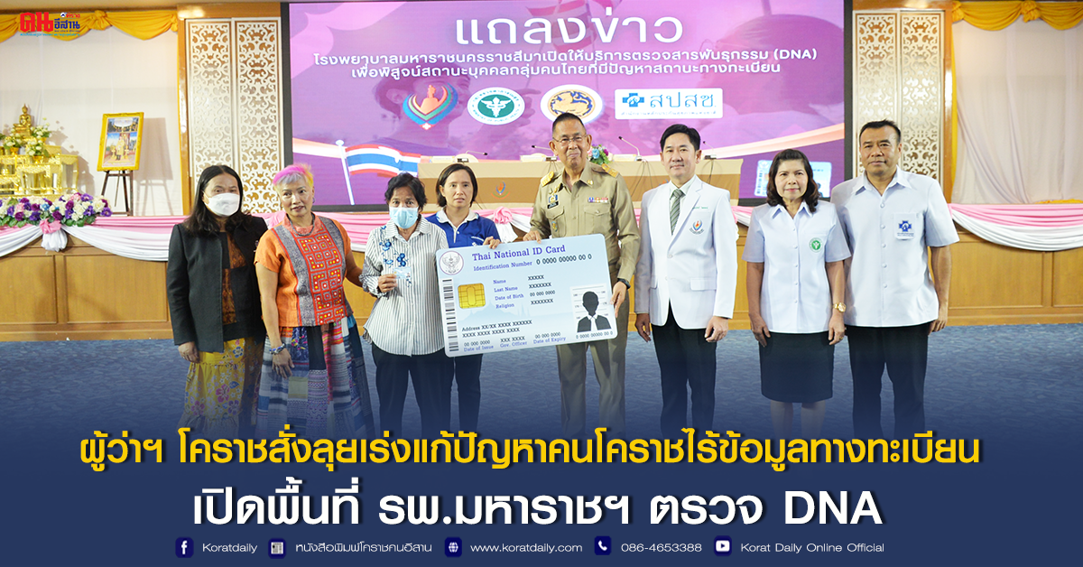 ผู้ว่าฯ โคราชสั่งลุยเร่งแก้ปัญหาคนโคราชไร้ข้อมูลทางทะเบียน เปิดพื้นที่ รพ.มหาราชฯ ตรวจ DNA