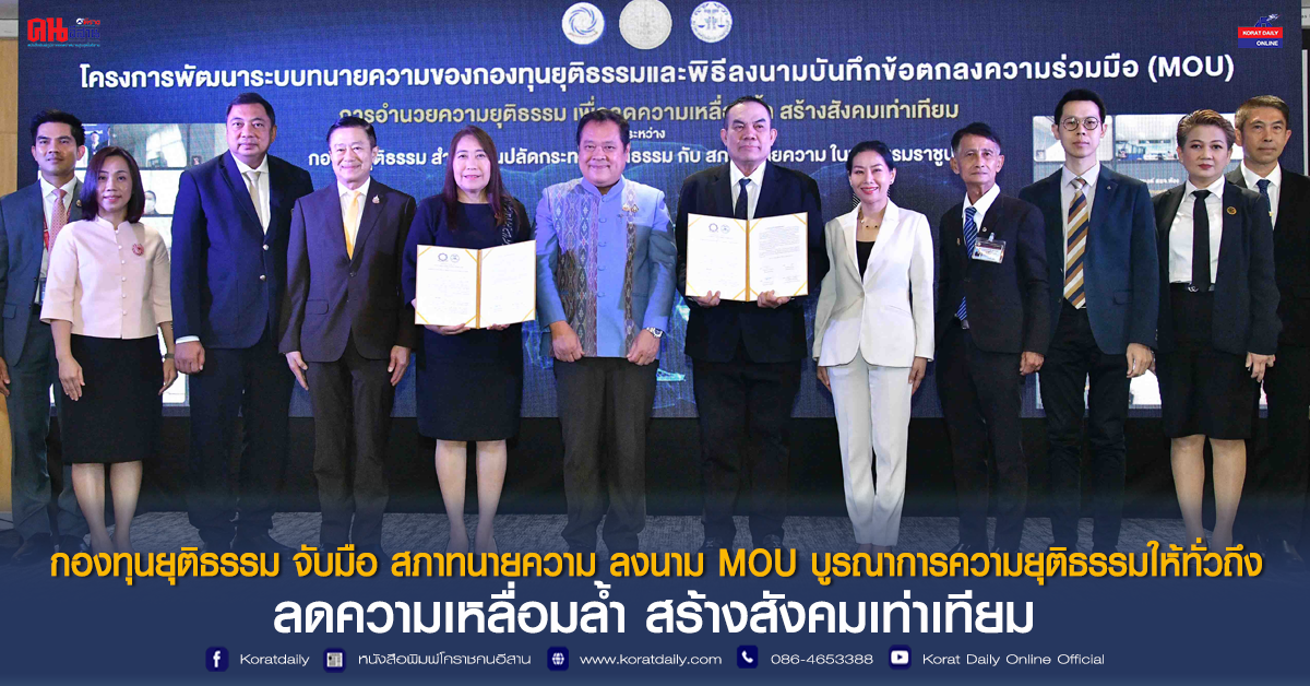 กองทุนยุติธรรม จับมือ สภาทนายความ ลงนาม MOU บูรณาการความยุติธรรมให้ทั่วถึง ลดความเหลื่อมล้ำ สร้างสังคมเท่าเทียม