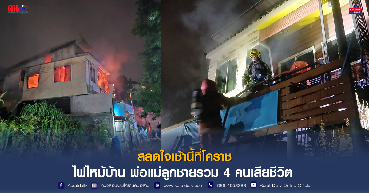 สลดใจเช้านี้ที่โคราช ไฟไหม้บ้าน พ่อแม่ลูกชายรวม 4 คนเสียชีวิต