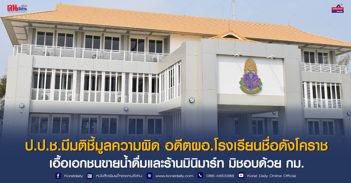ป.ป.ช.มีมติชี้มูลความผิด อดีตผอ.โรงเรียนชื่อดังโคราช เอื้อเอกชนขายน้ำดื่มและร้านมินิมาร์ท มิชอบด้วย กม.