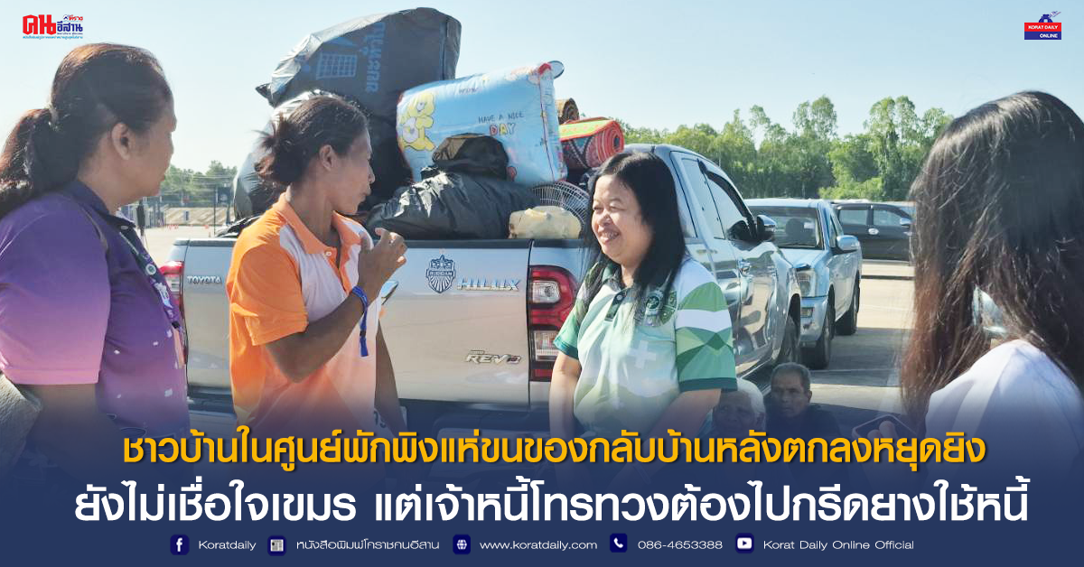 ชาวบ้านในศูนย์พักพิงแห่ขนของกลับบ้านหลังตกลงหยุดยิง ยังไม่เชื่อใจเขมร แต่เจ้าหนี้โทรทวงต้องไปกรีดยางใช้หนี้