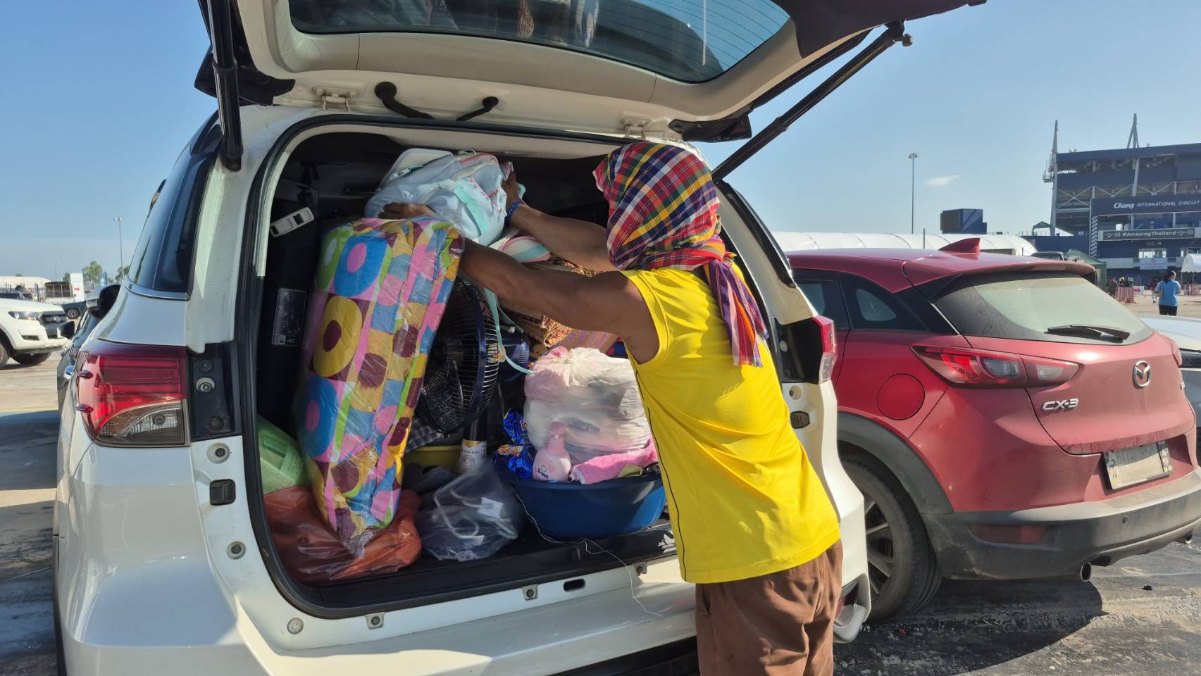 (8 ส.ค.68) ชาวบ้าน เด็ก ผู้สูงอายุที่หนีภัยการสู้รบจากแนวชายแดนไทย-กัมพูชา มาอยู่ในศูนย์พักพิงชั่วคราว สนามช้างอินเตอร์เนชั่นแนล เซอร์กิตจังหวัดบุรีรัมย์ ต่างทยอยขนเสื้อผ้า ข้าวของเครื่องใช้ขึ้นรถยนต์ เพื่อเดินทางกลับบ้านที่อำเภอบ้านกรวด หลังทราบว่าตัวแทนรัฐบาลทั้งสองประเทศมีการเจรจาหยุดยิง ซึ่งทุกคนต่างก็ดีใจมีสีหน้ายิ้มแย้ม เพราะจะได้กลับไปใช้ชีวิตที่บ้านและทำมาหากินตามปกติเหมือนเดิม หลังจากต้องทิ้งบ้านสัตว์เลี้ยงวัว ควาย สุนัข เป็ด ไก่ ที่เลี้ยงไว้มาอยู่ที่ศูนย์พักพิงนานกว่า 2 สัปดาห์ จนบางคนเกิดความเครียด ซึ่งวันนี้เป็นวันแรกที่จะได้กลับไปใช้ชีวิตที่บ้าน แต่หลายคนก็ยอมรับว่ายังกังวลเพราะแม้จะมีการเจรจาหยุดยิงแล้ว แต่ก็ไม่มั่นใจกัมพูชาว่าจะปฏิบัติตามข้อตกลง แต่ก็ตัดสินใจกลับไปบ้านก่อน เพื่อไปทำมาหากินและหาเงินชำระหนี้ หากมีการสู้รบขึ้นอีกก็พร้อมจะอพยพกลับมาเพื่อความปลอดภัย
