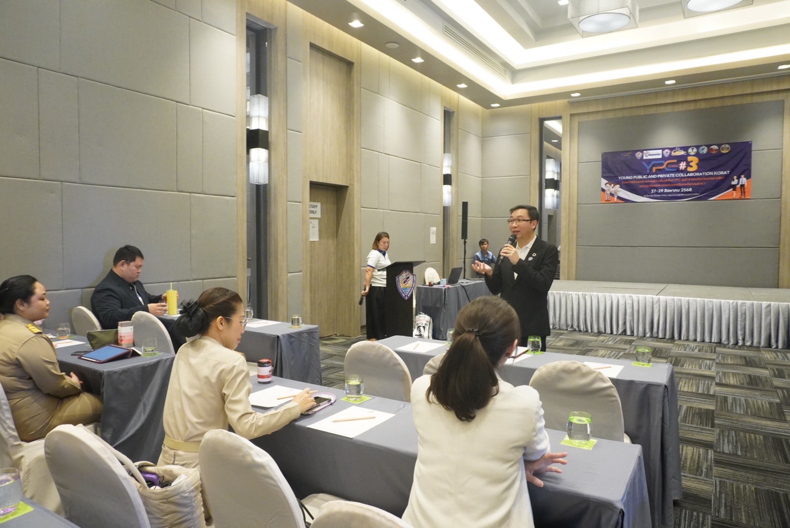 วันที่ 27 สิงหาคม 2568 ที่โรงแรมกรีนวิล ลากูน่า อ.สูงเนิน หอการค้าจังหวัดนครราชสีมา จัดพิธีเปิดการอบรมเชิงปฎิบัติการ หลักสูตร "พัฒนาศักยภาพผู้นำคลื่นใหม่ (Young Public and Private Collaboration) YPC รุ่นที่ 3" ของจังหวัดนครราชสีมา และกลุ่มจังหวัดภาคตะวันออกเฉียงเหนือตอนล่าง 1 โดยมีนายชัยวัฒน์ ชื่นโกสุม ผู้ว่าราชการจังหวัดนครราชสีมา เป็นประธานเปิดการอบรม พร้อมด้วย นายไพจิตร มานะศิลป์ ประธานหอการค้าฯ , คุณกรคณา ลืออดุลย์ ผู้อำนวยการกลุ่มงานบริหารยุทธศาสตร์กลุ่มจังหวัดภาคตะวันออกเฉียงเหนือตอนล่าง 1 , นายชนนท์ ปิยะศิลป์ ประธานจัดโครงการฯ และประธาน YEC KORAT , คณะกรรมการหอการค้าฯ และ ผู้เข้าร่วมอบรม ภาครัฐ ภาคเอกชน เข้าร่วมการอบรมในครั้งนี้ ซึ่งการอบรมดังกล่าวจัดขึ้นระหว่างวันที่ 27-29 สิงหาคม 2568