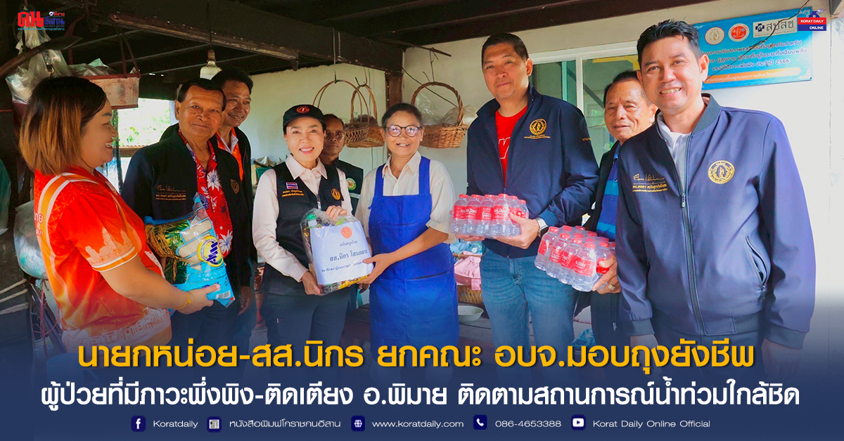 นายกหน่อย-สส.นิกร ยกคณะ อบจ.มอบถุงยังชีพ ผู้ป่วยที่มีภาวะพึ่งพิง-ติดเตียง อ.พิมาย ติดตามสถานการณ์น้ำท่วมใกล้ชิด