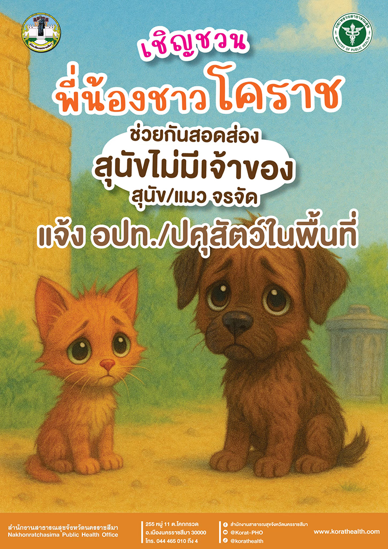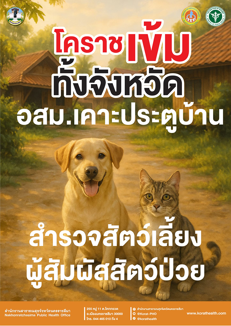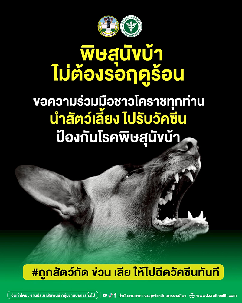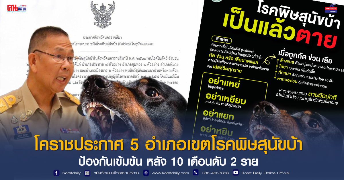 โคราชประกาศ 5 อำเภอเขตโรคพิษสุนัขบ้า ป้องกันเข้มข้น หลัง 10 เดือนดับ 2 ราย