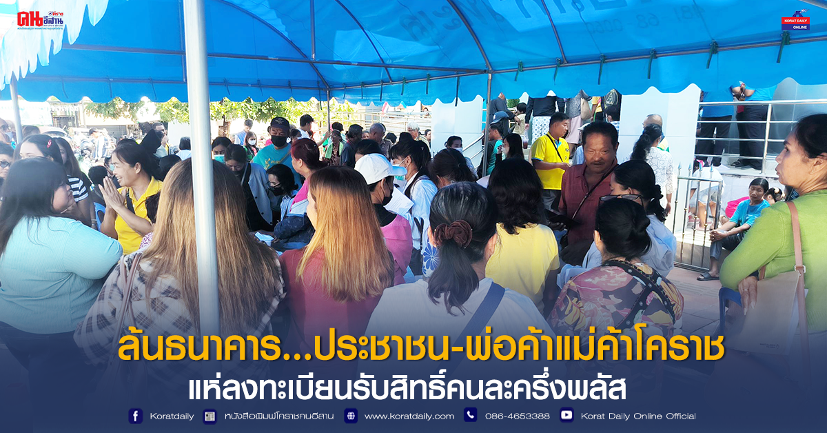 ล้นธนาคาร ประชาชน-พ่อค้าแม่ค้าโคราช แห่ลงทะเบียนรับสิทธิ์คนละครึ่งพลัส
