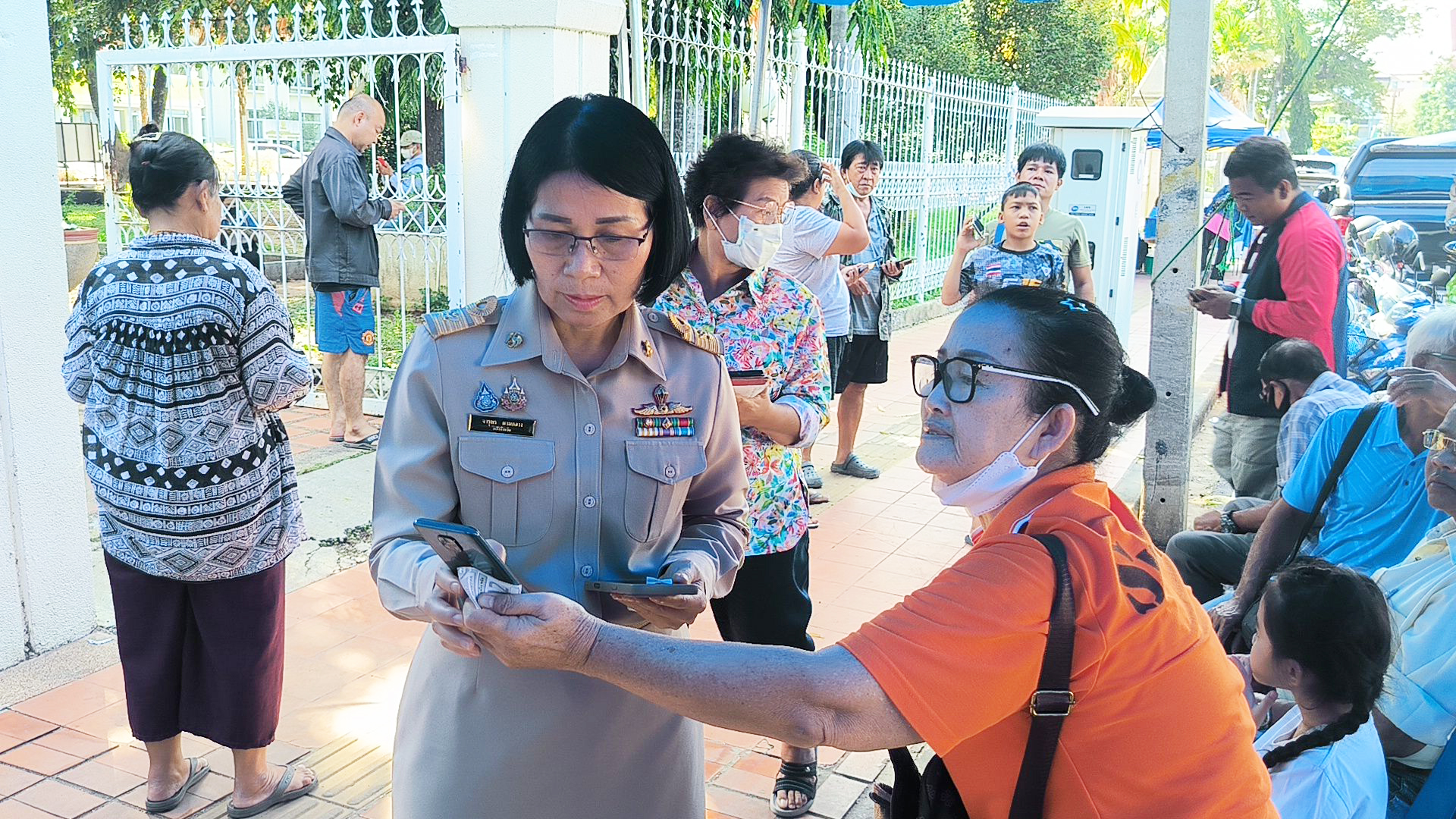 นางสุมล ถนัดกลาง อายุ 57 ปี ชาว อ.โนนสูง นครราชสีมา เผยว่า เดินทางมารอคิวตั้งแต่ 07.00 น. พบว่ามีประชาชน และพ่อค้าแม่ค้ารายอื่นๆมารอตั้งแต่ช่วงเช้ามืดโดยคิวแรกๆ มารอตั้งแต่ 05.00 น. ส่วนตนลูกหลานได้พามาเพื่อยืนยันตัวตน เนื่องจากได้เปลี่ยนหลายเลขโทรศัพท์มือถือ ทำให้ไม่สามารถลงทะเบียนได้