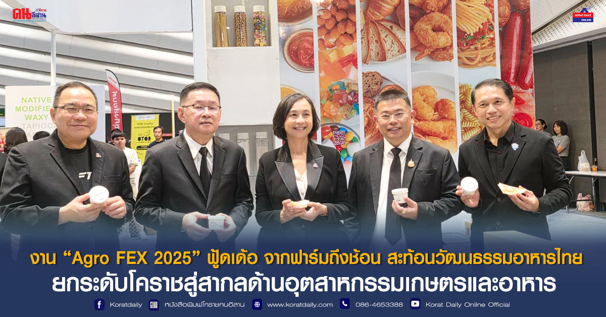 งาน “Agro FEX 2025” ฟู้ดเด้อ จากฟาร์มถึงช้อน สะท้อนวัฒนธรรมอาหารไทย ยกระดับโคราชสู่สากลด้านอุตสาหกรรมเกษตรและอาหาร อย่าพลาดชมนวัตกรรมอาหารสู่อวกาศ