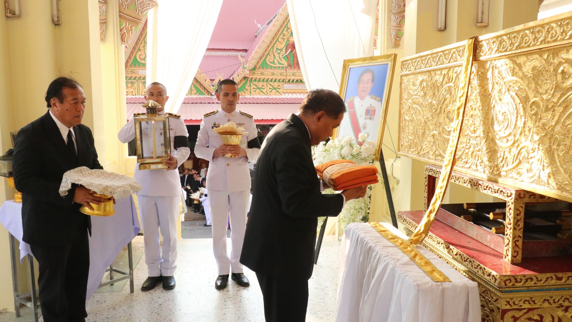 เมื่อเวลา 16.00 น. วันที่ 7 ธันวาคม 2568 ที่เมรุวัดโพธิ์ ต.ในเมือง อำเภอเมืองนครราชสีมา นายกมล ศิริบรรณ อดีตรองปลัดกระทรวงศึกษาธิการ เป็นประธานทอดผ้าไตรบังสุกุลในพิธีพระราชทานเพลิงศพนายทอง วิริยะจารุ อายุ 75 ปี อดีตผู้อำนวยการโรงเรียนอนุบาลนครราชสีมา และอดีตประธานสหกรณ์ออมทรัพย์ครูนครราชสีมา ซึ่งเสียชีวิตด้วยภาวะปอดติดเชื้อ เมื่อวันที่ 2 ธันวาคม 2568 โดยมีบุคลากรในวงการศึกษา ทั้งข้าราชการบำนาญ ผู้บริหาร ครู ผู้บริหารองค์กรปกครองส่วนท้องถิ่น (อปท.) ผู้แทนภาครัฐ-เอกชน และผู้เคารพนับถือร่วมแสดงความอาลัยในวาระสุดท้ายจำนวนมาก