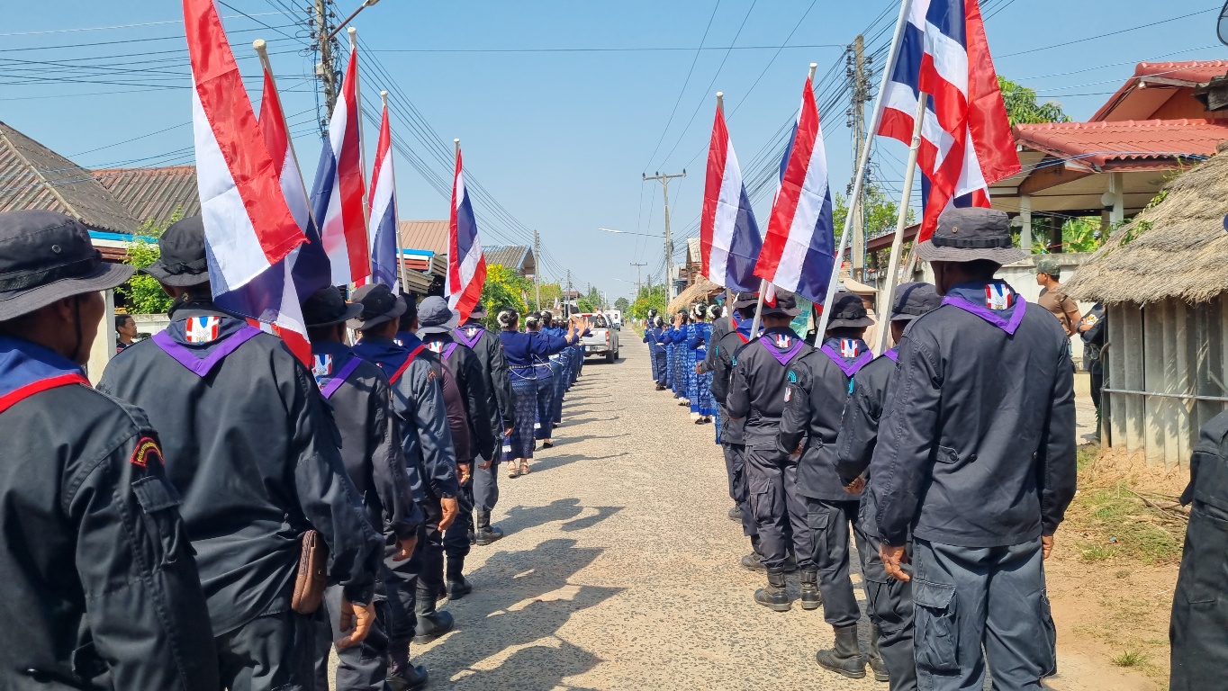 (9 มี.ค.69) ผู้นำชุมชน ชุดรักษาความปลอดภัยหมู่บ้าน (ชรบ.) พร้อมด้วยครอบครัว และชาวบ้านร่วมกันจัดขบวนแห่ ร้อยตรีธีรยุทธ กระจ่างทอง ทหารกล้าที่เสียชีวิตในการปฏิบัติหน้าที่ตามแนวชายแดนไทย-กัมพูชา บริเวณฐานช่องตาเฒ่า จ.ศรีสะเกษ เมื่อคืนวันที่ 29 กรกฎาคม 2568 โดยได้แห่จากอำเภอนางรอง เพื่อนำไปตั้งประดิษฐานที่บ้านเกิด ในพื้นที่บ้านยางโป่งสะเดา ต.ตาจง อ. ละหานทราย จ. บุรีรัมย์ ท่ามกลางบรรยากาศแห่งความภาคภูมิใจและการรำลึกถึงความกล้าหาญของผู้ล่วงลับ