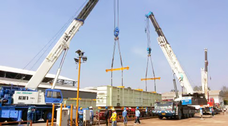 ในพื้นที่โรงงานที่มีเครื่องจักรหนาแน่น มักใช้ Rough Terrain Crane (เครน 4 ล้อ) เพราะมีวงเลี้ยวแคบ สามารถเคลื่อนที่ได้ดีในพื้นที่ขรุขระ หรือหากเป็นการติดตั้งเครื่องจักรภายในอาคารที่มีเพดานต่ำ อาจต้องใช้เครนขนาดเล็กที่มีความแม่นยำสูง
