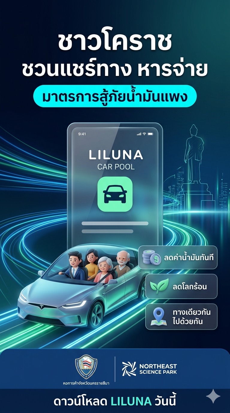 หอการค้าโคราช จับมือ Science Park ดันมาตรการ "Car Pool" ผ่านแอปฯ LILUNA สู้ภาวะน้ำมันแพง-ผลกระทบสงครามตะวันออกกลาง เน้นลดรายจ่าย และรักษ์โลก
