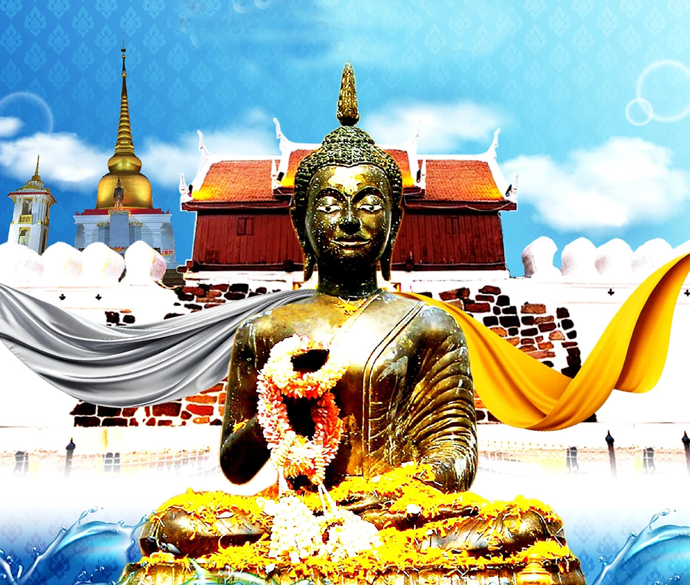 สำหรับในวันที่ ๑๕ เมษายน เวลา ๑๘.๐๐ น. มีพิธีอัญเชิญพระคันธารราฐเข้าสู่พระเจดีย์ และพิธีห่มผ้าพระเจดีย์ ณ บริเวณลานพระบรมราชานุสาวรีย์สมเด็จพระนารายณ์มหาราช วัดพระนารายณ์มหาราช วรวิหาร
